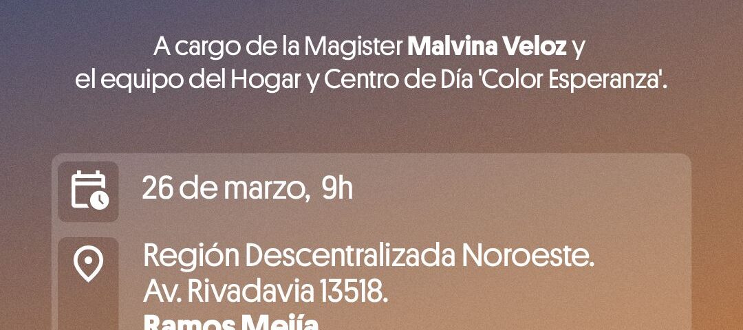 La cita es el jueves 26 de marzo a las 9 horas en la Región Descentralizada Noroeste (Av. Rivadavia 13518, Ramos Mejía). El panel contará con la presencia de la Magister Malvina Veloz y el equipo del Hogar y Centro de Día Color Esperanza, quienes abordarán los ejes de la Ley 26.150: el respeto por la diversidad, la equidad de género, la valoración de la afectividad y el cuidado del propio cuerpo.